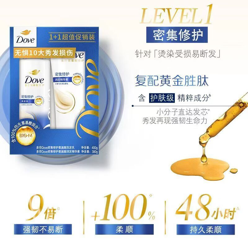多芬(Dove)密集修护氨基酸洗发水护发素套装仅售109.9元!拥有氨基酸配方,专为染烫受损发质设计,1,000,000+好评,99%好评率,百亿补贴与7天无理由退货保障,限时抢购!