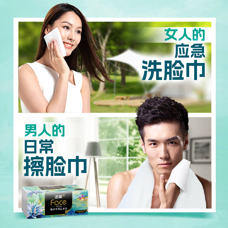 • 超柔软:采用艺术油画纸巾技术,手感柔软舒适,轻柔接触肌肤。