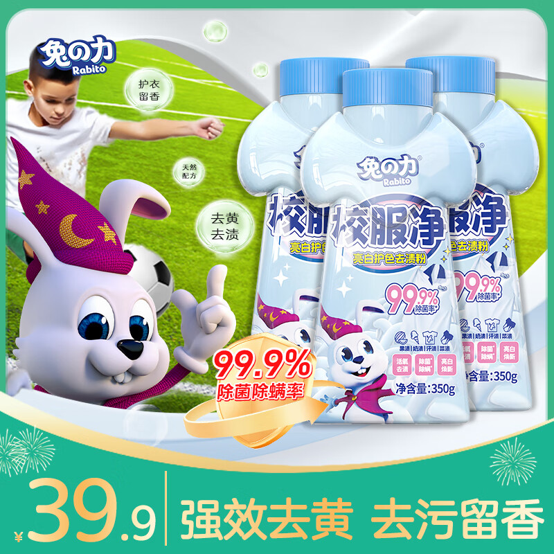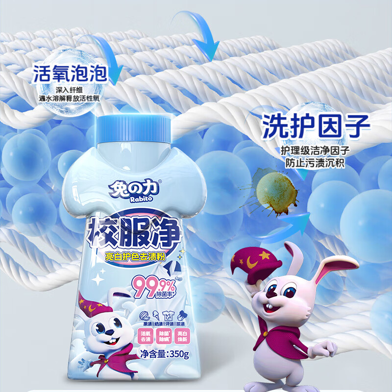 兔の力校服净爆炸盐 39.9元 – 超强去黄去污,彩色衣物再现亮丽