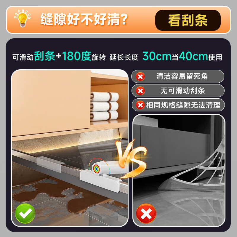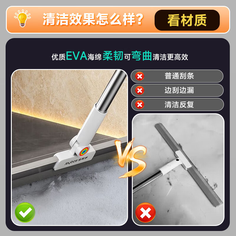 • 魔术扫刮双功能:前端为扫刷,后端为刮水头,省时省力,一机两用。