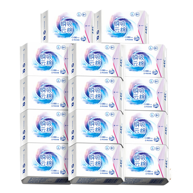 这款 ABC卫生巾 采用瞬吸云棉技术,超薄棉柔设计,让你在夜间也能保持干爽与轻薄。它拥有 280mm 长度 × 112片 的规格,适合长夜使用。