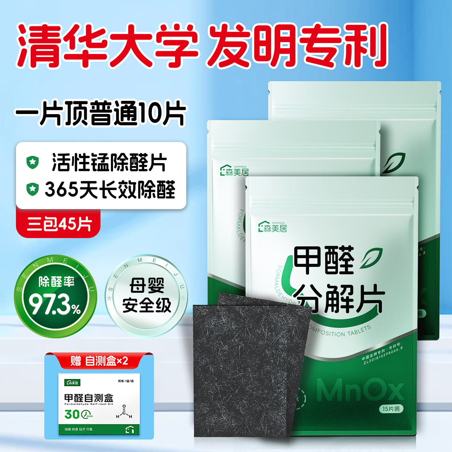 森美居清华大学活性锰除甲醛分解片—45 片装,原价 299 元,现价仅 299 元,拥有 5,000 条好评、99% 好评率,适用于新房、家具等场景,快速高效去除甲醛。
