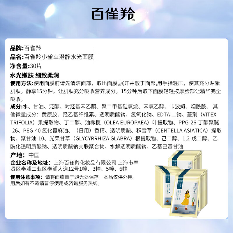 百雀羚小雀幸澄静美肌水光面膜仅售138元,亲肤保湿好评率99%!