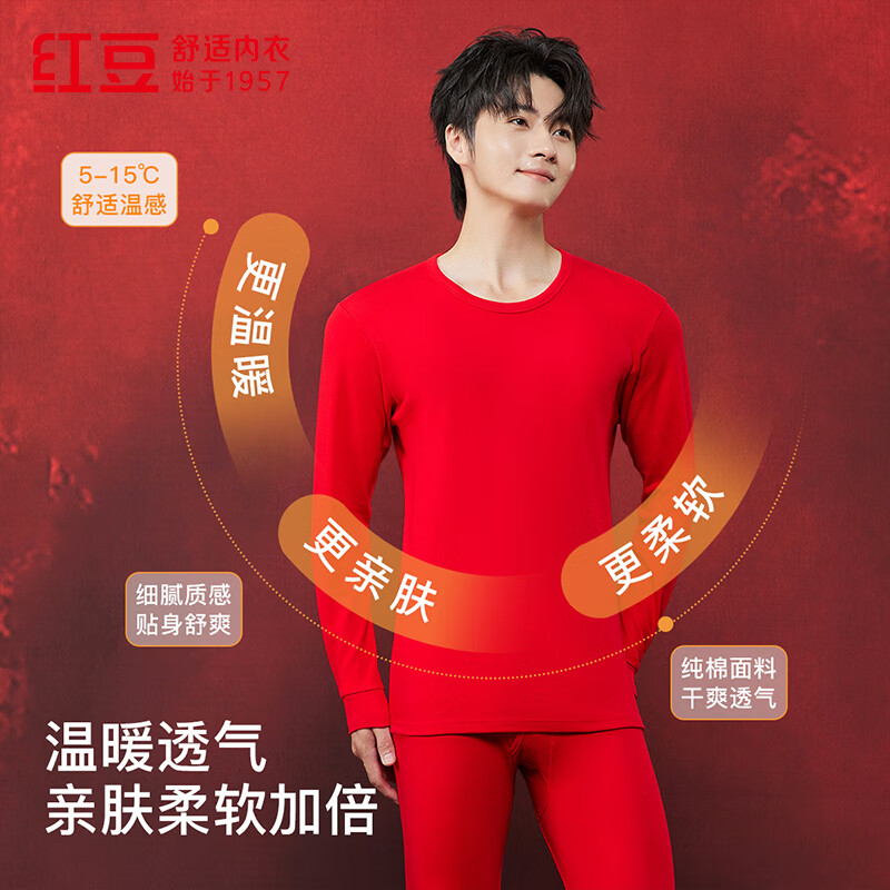 红豆内衣男7A抑菌升级秋衣秋裤纯棉套装—仅售 64.8 元,限量优惠