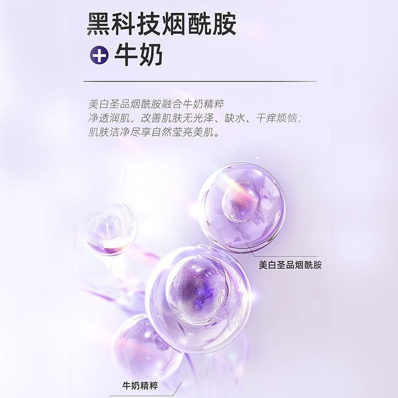 - 牛奶精粹配方:温和滋润,给肌肤补水锁水。
