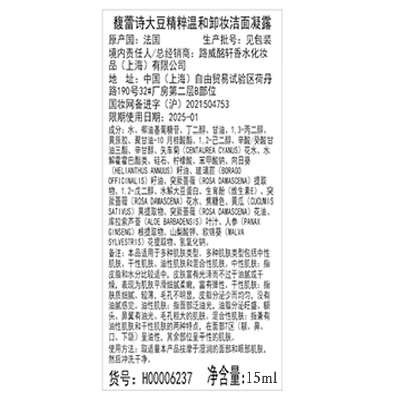 - 天然大豆精粹:温和洁净,补水保湿,适合所有肤质。