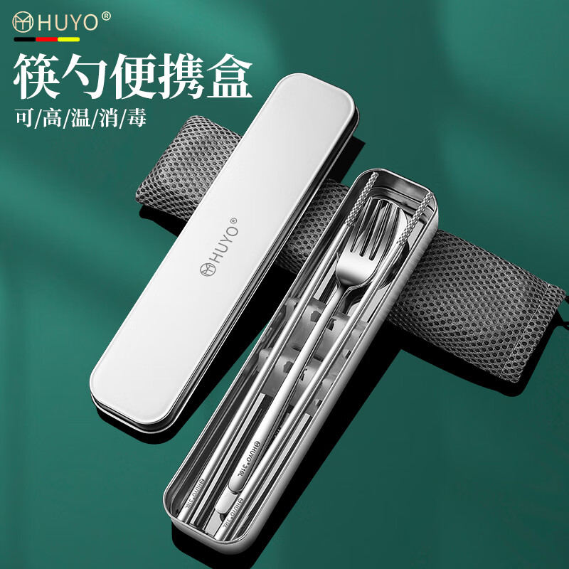 HUYO不锈钢餐具盒空盒筷叉勺子三件套