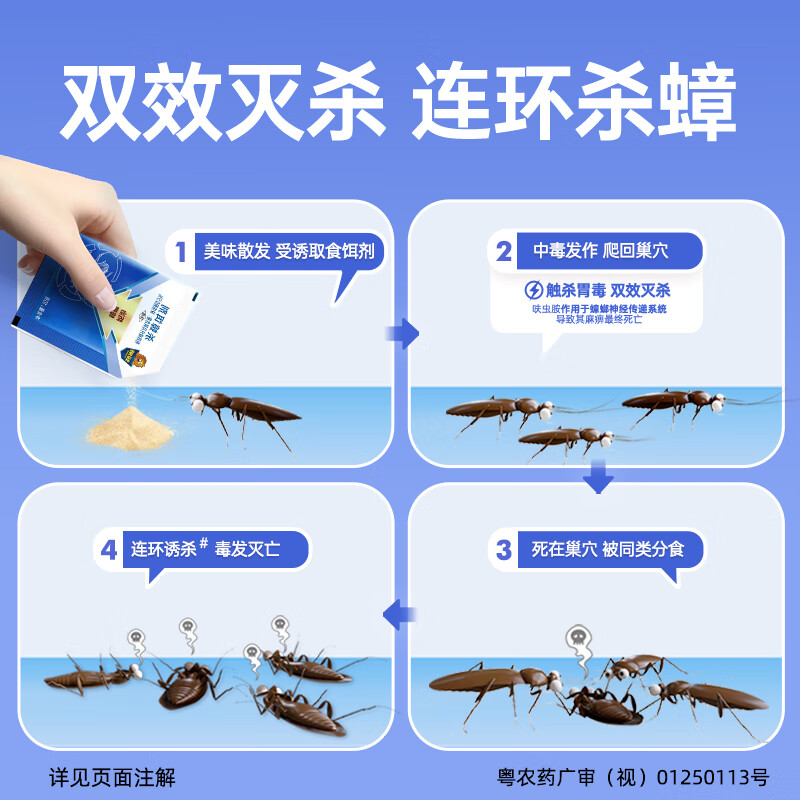 - 全窝端杀:一次性消灭蟑螂,彻底根除。
