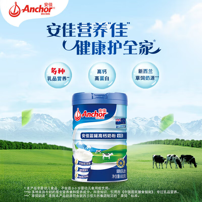 安佳(Anchor)新西兰奶源全脂奶粉 900g