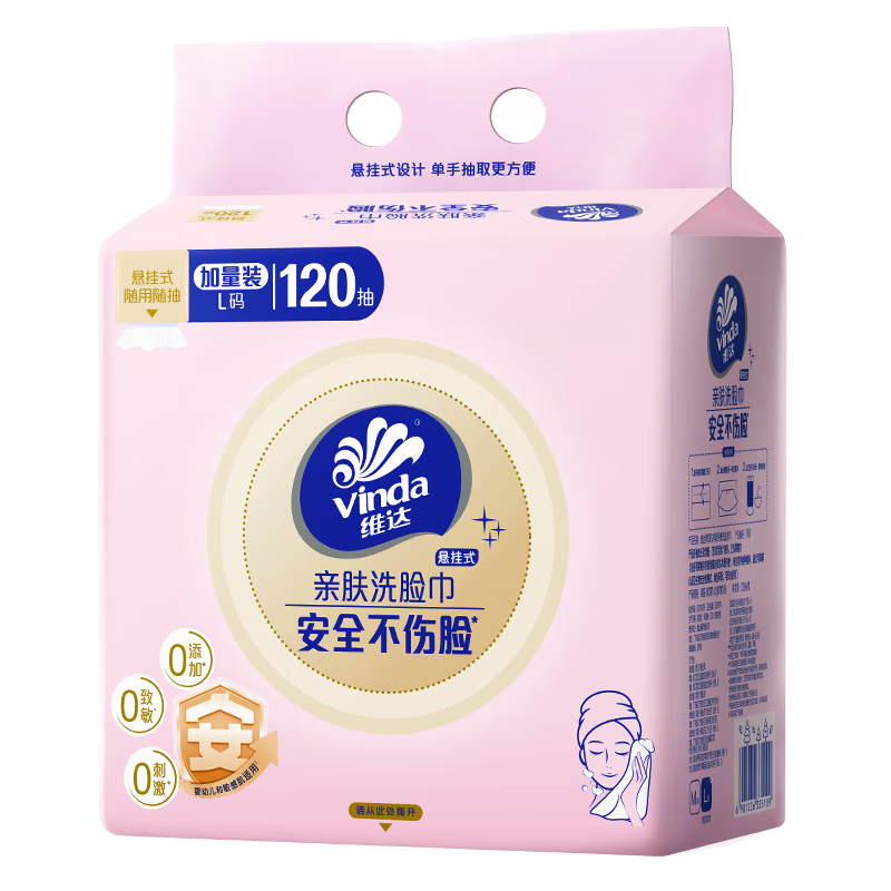 维达(Vinda)洗脸巾 120抽*单提 一次性毛巾洗脸巾