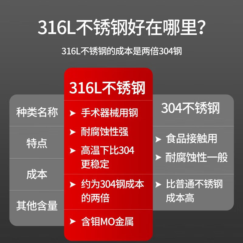 - 材质:316L不锈钢,耐腐蚀、易清洁