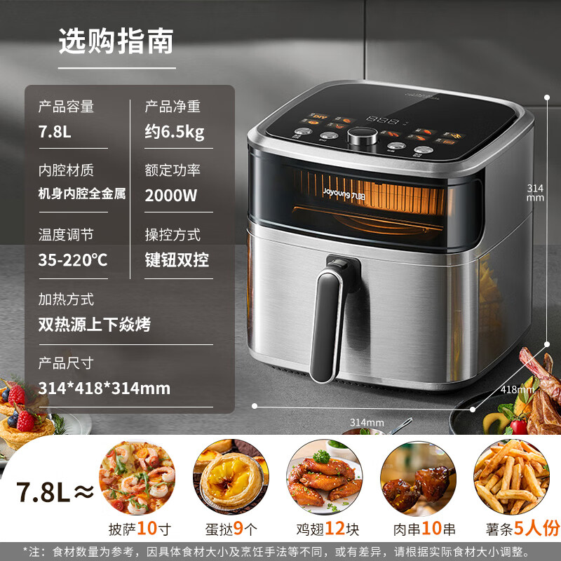 - 7.8L 大容量:一次可炸 12 人份餐点,满足全家聚餐需求。