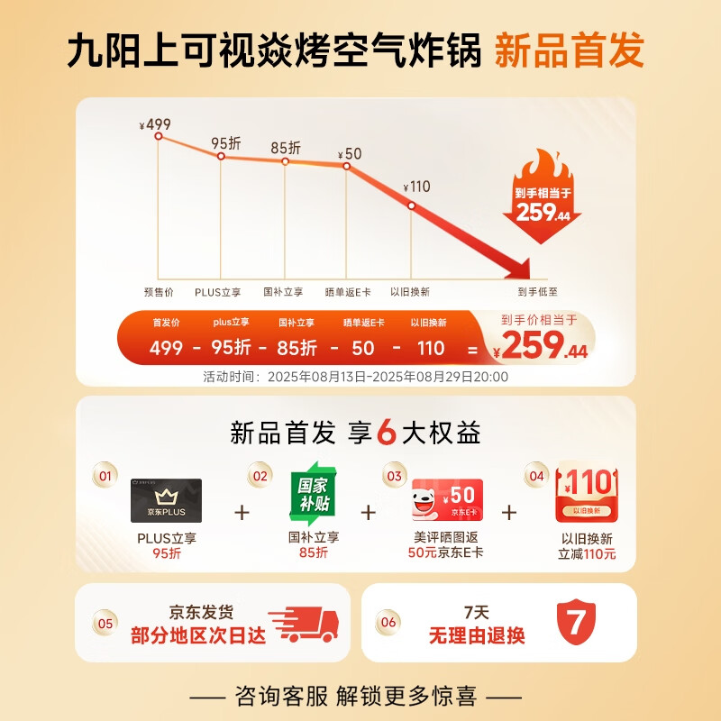 别再等了,快点击下方链接抢购九阳双热源空气炸锅,享受 699 元的超低价与多重优惠!