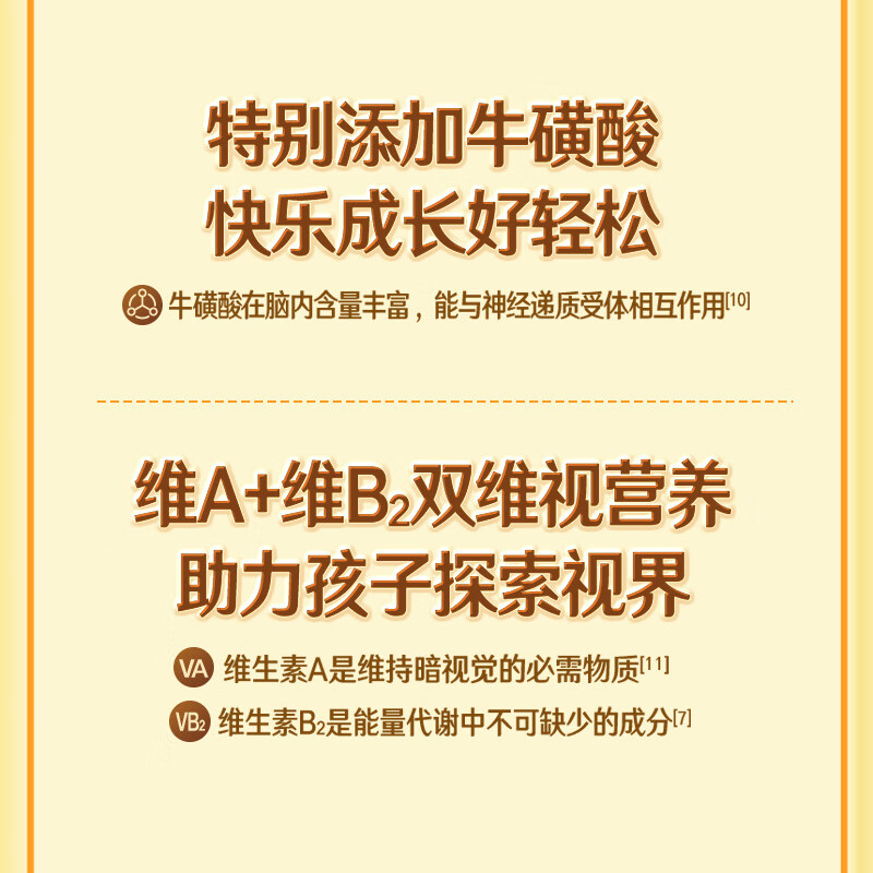 • 牛磺酸 + DHA + ARA:强化大脑功能与视力。