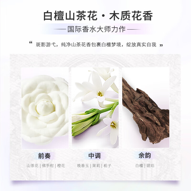 - 香氛:白檀山茶天然香气,带来舒适愉悦的使用体验。