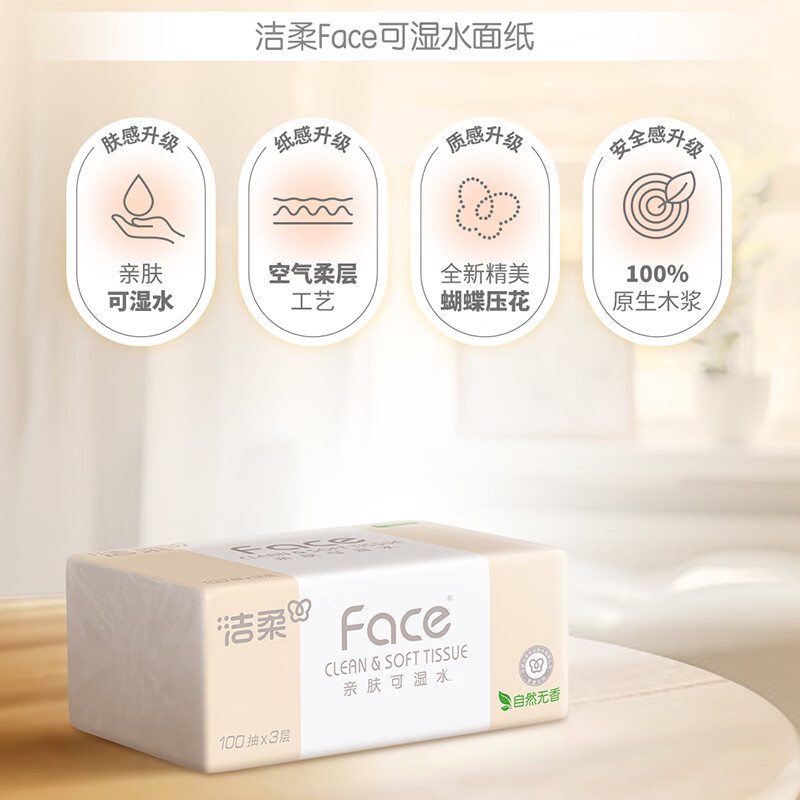 - 三层柔软设计:每张纸巾采用三层结构,柔软度极佳,轻轻一抹即吸附污垢。