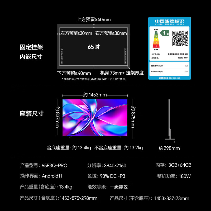 海信 65E3Q Pro 65英寸 MiniLED 电视,300Hz 高刷、3G+64G 大内存,国家补贴最高减20%,仅 3499 元,限时抢购!