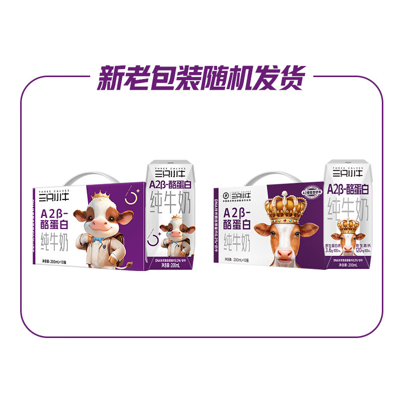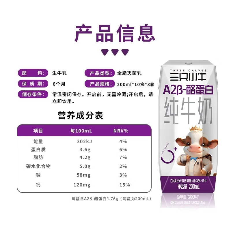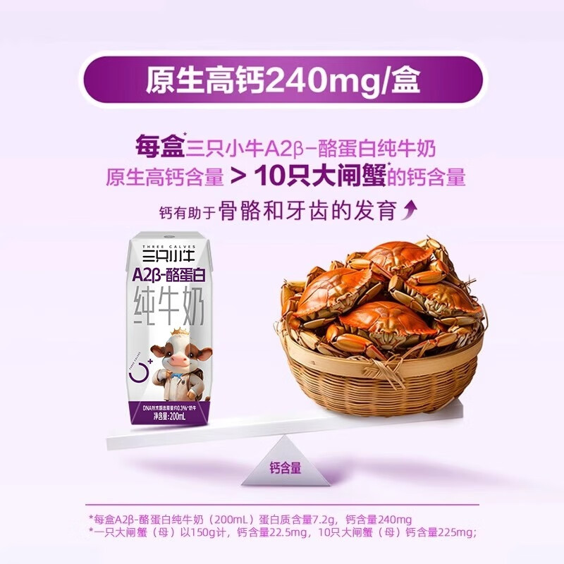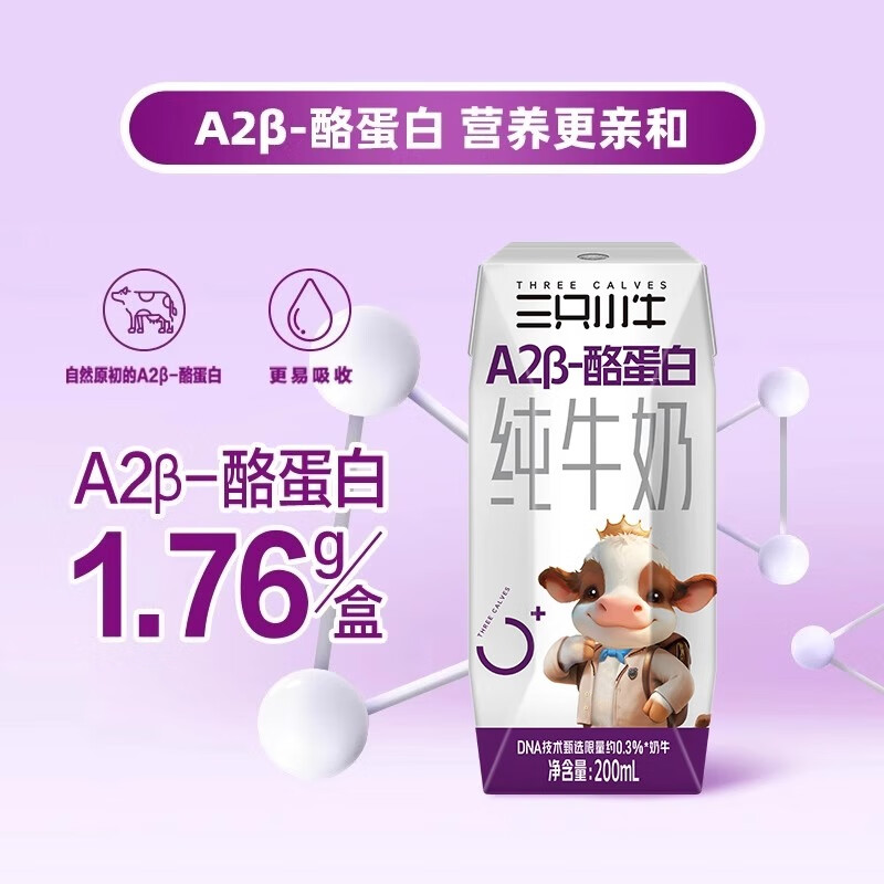 【限时优惠】现代牧业三只小牛A2β酪蛋白儿童纯牛奶 200ml×10包,仅售 58.5 元!