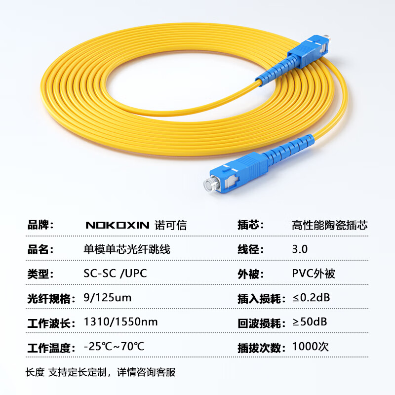 实惠无敌!3.9元购买诺可信(Nokoxin)电信级光纤跳线SC‑SC单模单芯3米