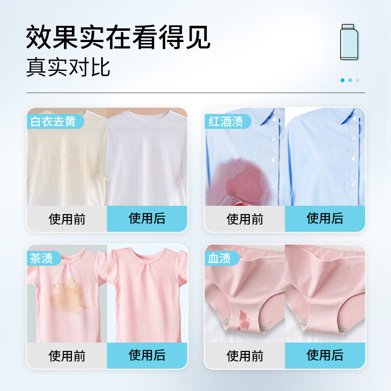 - 多用途:适用于校服、工作服、日常家居衣物,轻松去黄、去污、漂白。