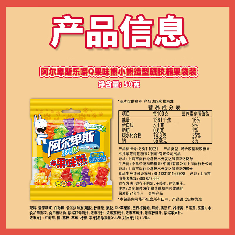 如果你想给孩子一个健康又可爱的零食,或者寻找一份既实惠又有趣的生日礼物,阿尔卑斯软糖乐嚼Q混合果味熊啫喱糖绝对是你的最佳选择!