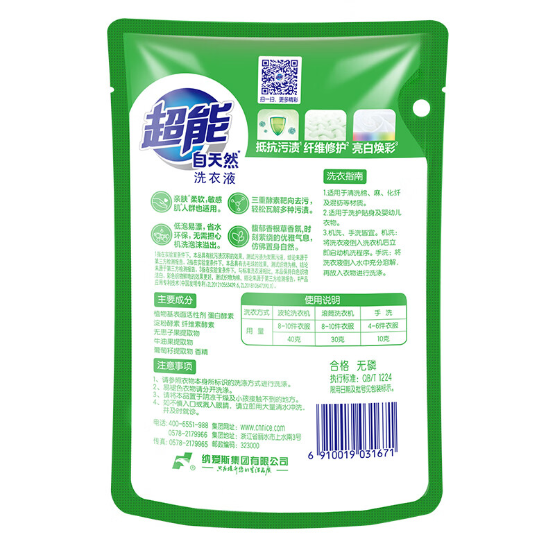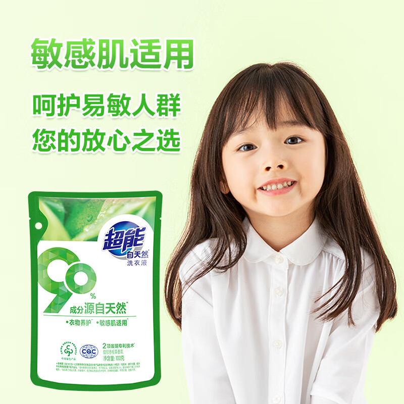 超能自天然洗衣液 100g:天然护肤,强效除污,7.5 元即可拥有