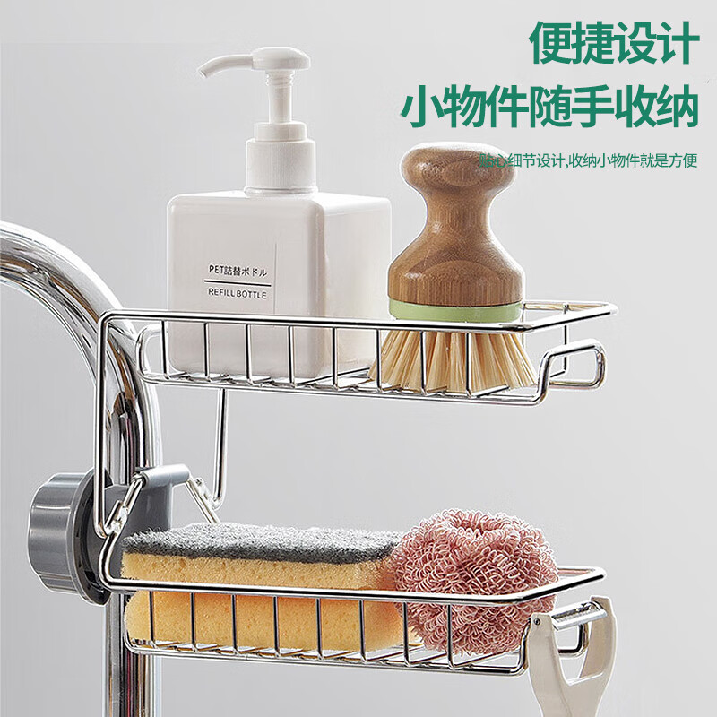 - 多功能挂钩:可以同时挂水龙头、海绵刷、百洁布、抹布等厨房必需品,极大节省台面空间。