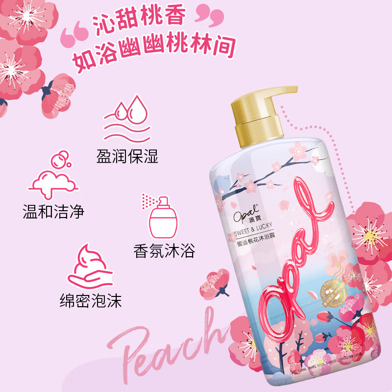 • 主打功效:滋养补水、润肤保湿,桃花香氛带来清爽舒适的沐浴体验