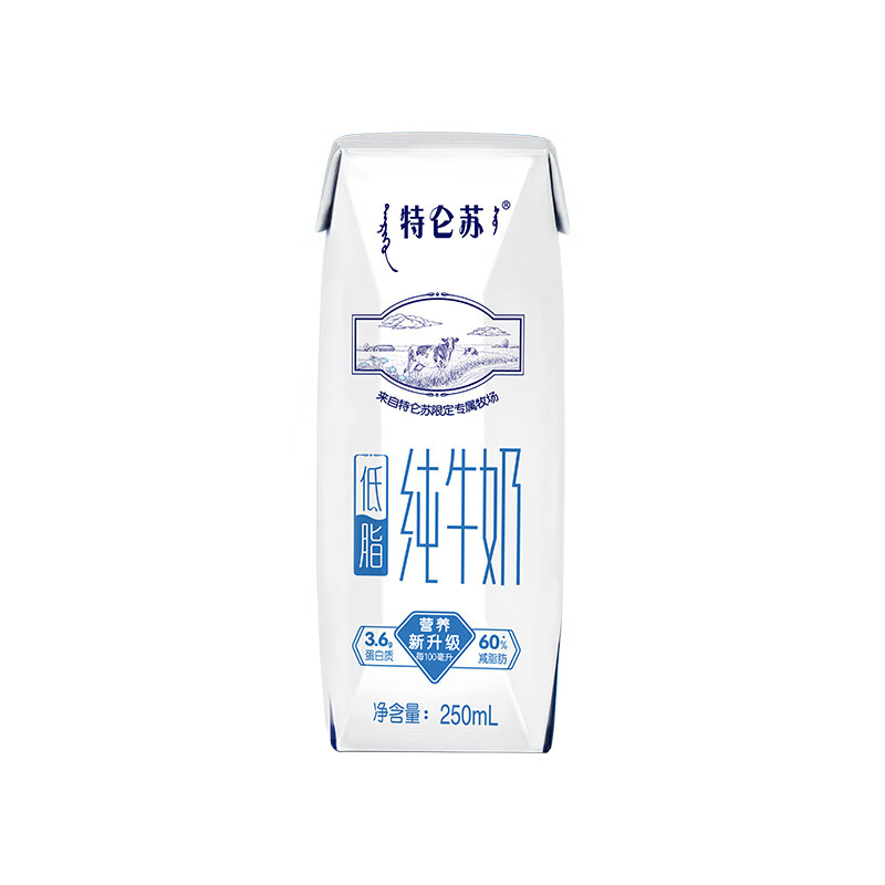 - 商品名称:特仑苏低脂纯牛奶250ml*16瓶/箱 低脂轻负担