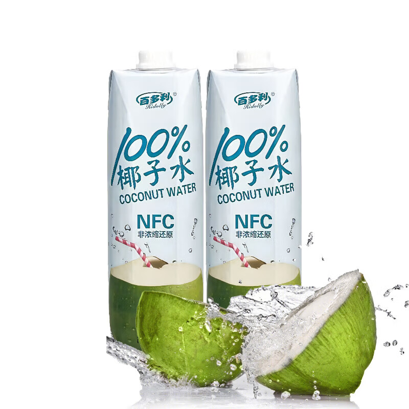 百多利100%椰子水 泰国进口椰青 纯椰汁NFC饮料 1L*4瓶,超值优惠仅售 33.99 元
