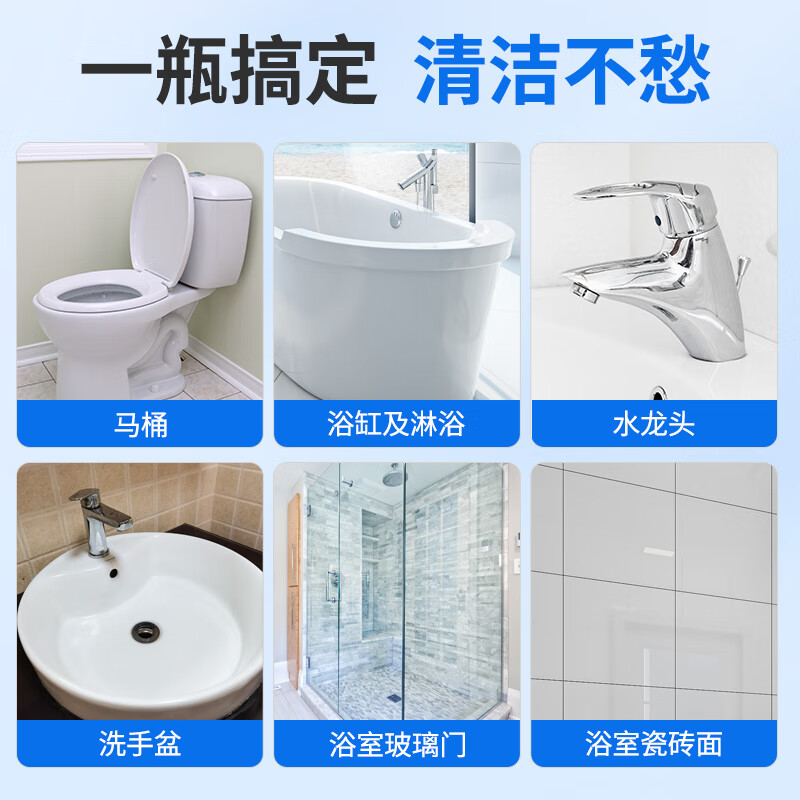 • 强效去垢配方:针对浴室常见的水垢、皂垢、瓷砖污渍,轻松清洁,焕然一新。