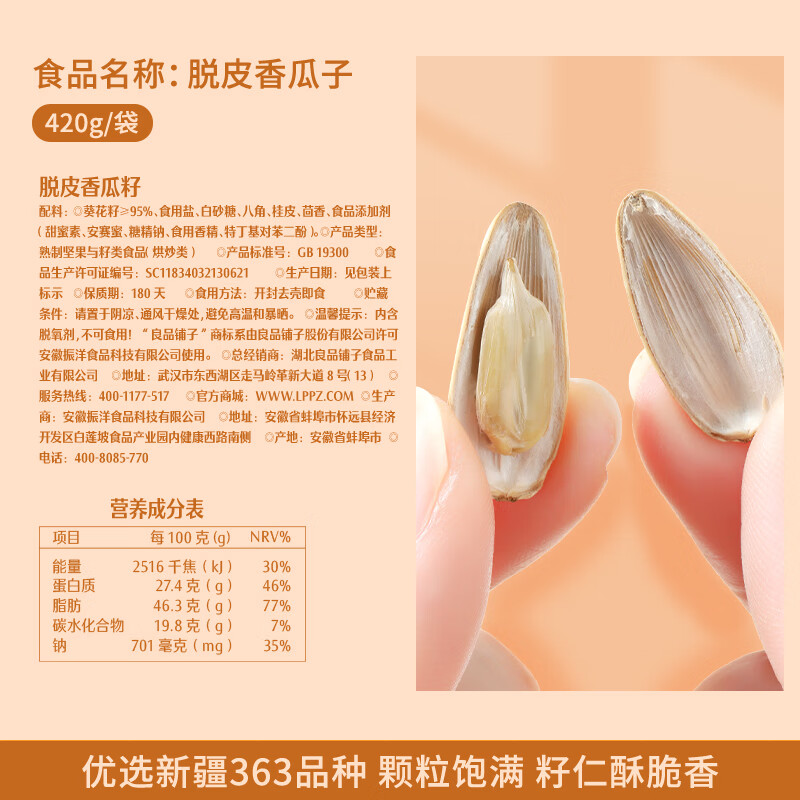 - 名称:脱皮香瓜籽420g
