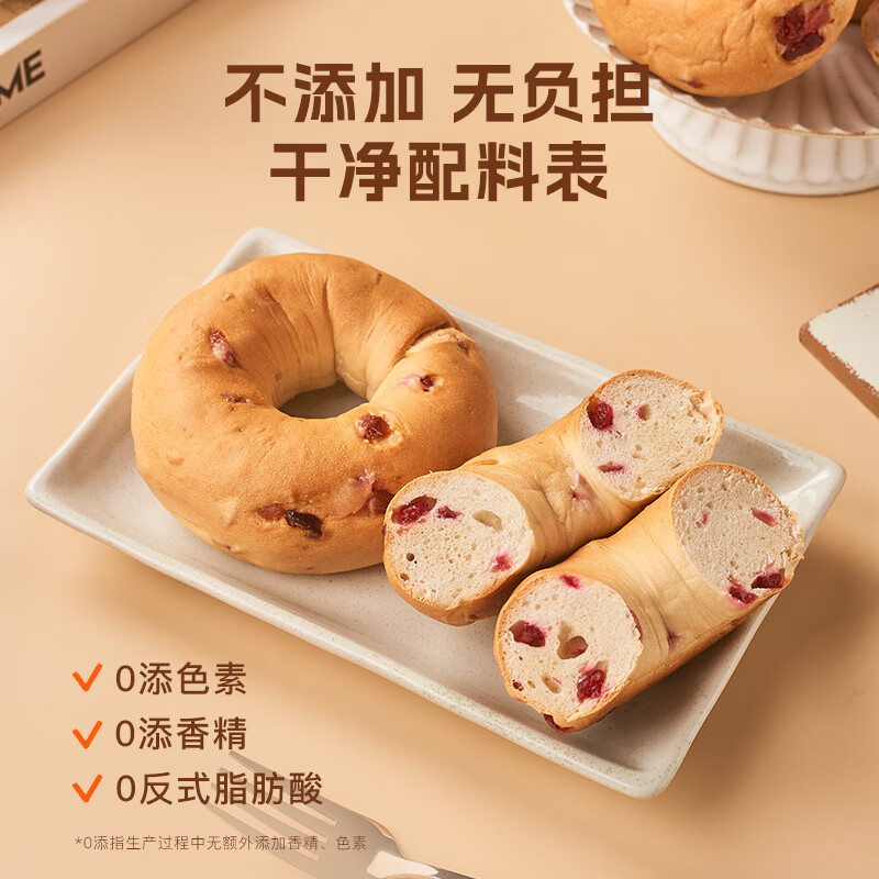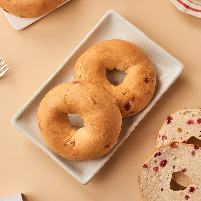 轻松享受健康早餐:趣尝鲜ROYAL LIGHT 蔓越莓贝果 8个 760g 仅售 34.9 元