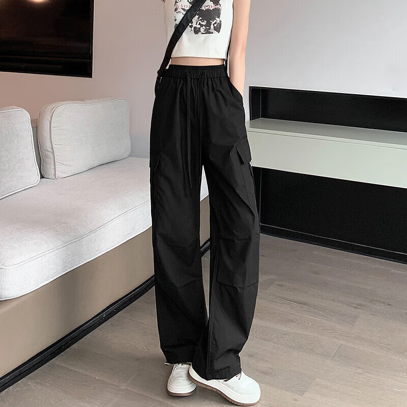 - 美式束脚设计 – 经典阔腿加长版型,适合小个子女生,显腿长又显高。