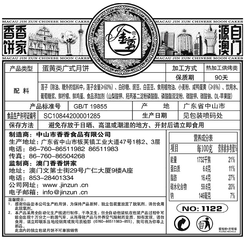 金尊澳门双黄莲蓉600g月饼礼盒 — 现价 52.64 元,限时 20% 优惠券