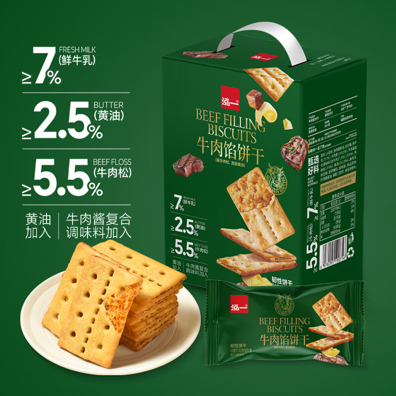 泓一牛肉馅酥脆饼干 只需29.9元,牛肉松口感满分!