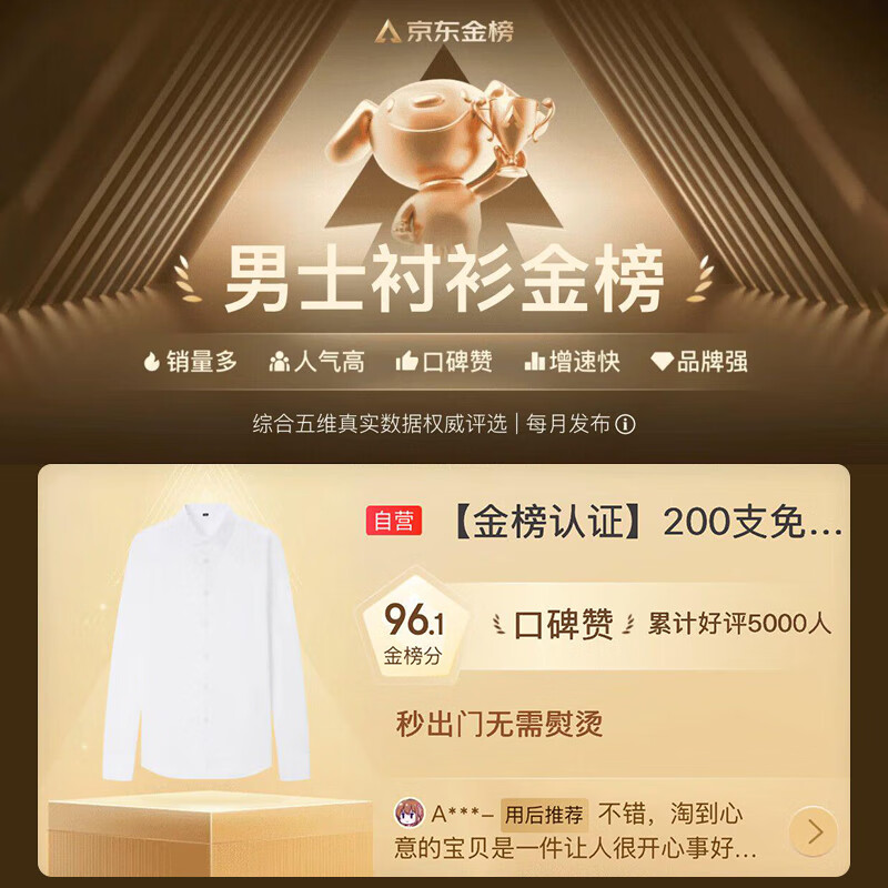 【京东京造】奢华200支男白衬衫,限时抢购仅 329 元