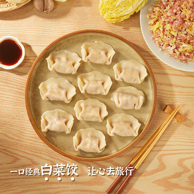 – 正宗口味:大白菜猪肉水饺,鲜肉馅料与爽滑饺子皮完美结合。