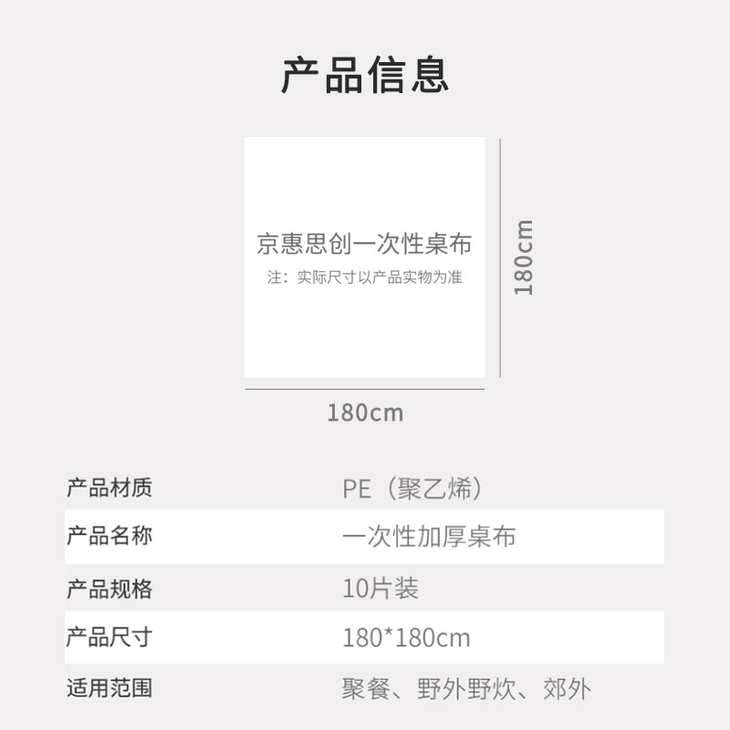 京惠思创一次性餐桌布(180*180cm)仅售 9.9 元,防水加厚易收拾!