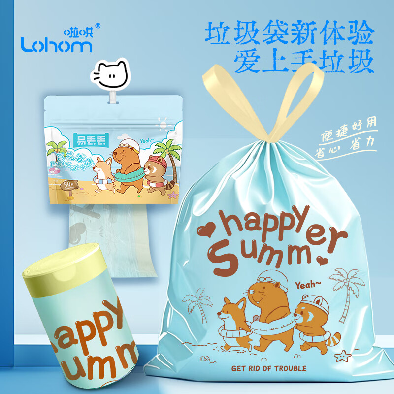 夏日清洁新选择:啦哄抽绳蓝色垃圾袋 45*45cm 50只,现价 8.99 元!