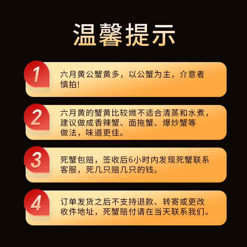- 本商品支持全国快递,极速到货,开启新鲜蟹香体验。