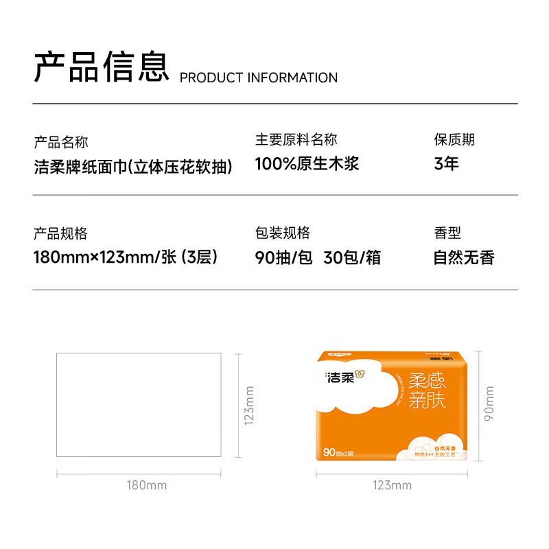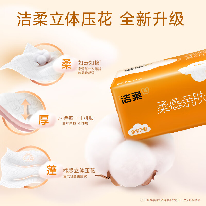 洁柔抽纸棉柔感 3层90抽×30包 | 仅 39.9 元,快来抢购!
