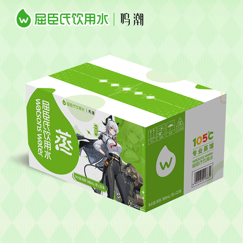 屈臣氏蒸馏水 × 鸣潮赞妮款 500mL*22瓶整箱,现价仅 79.9 元!