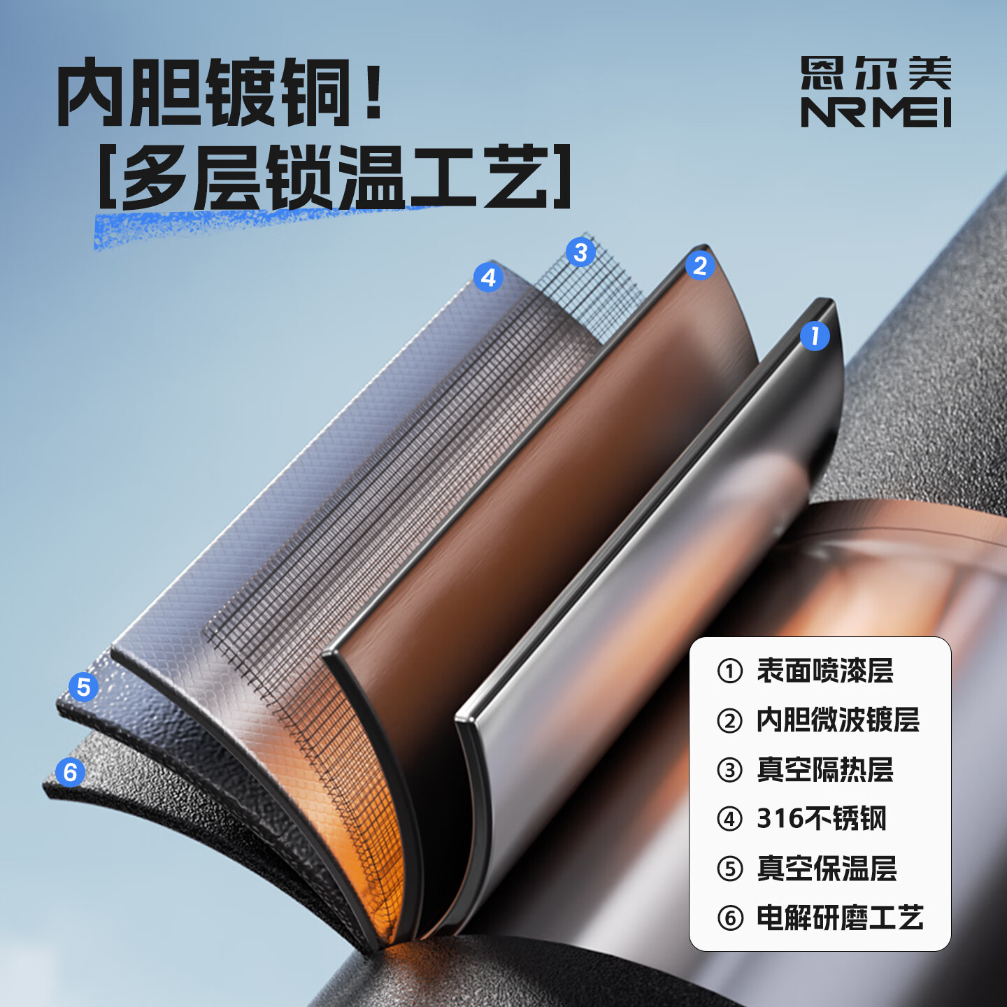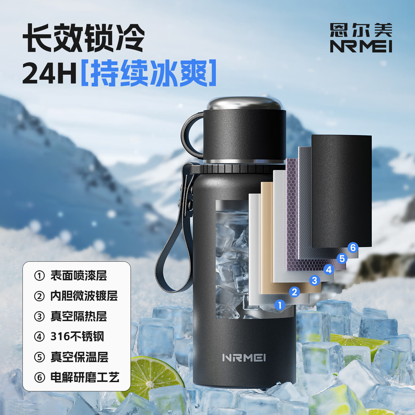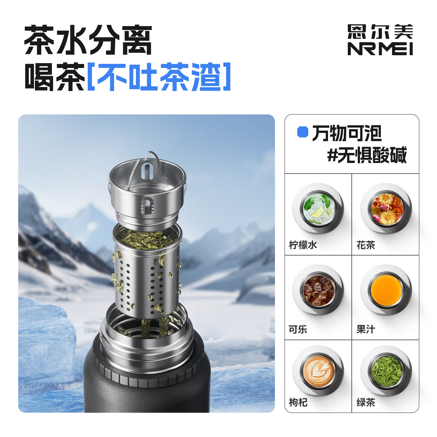 恩尔美(nRMEi)男士保温杯:316不锈钢,超大容量,冰块不化,便携式焖泡茶壶