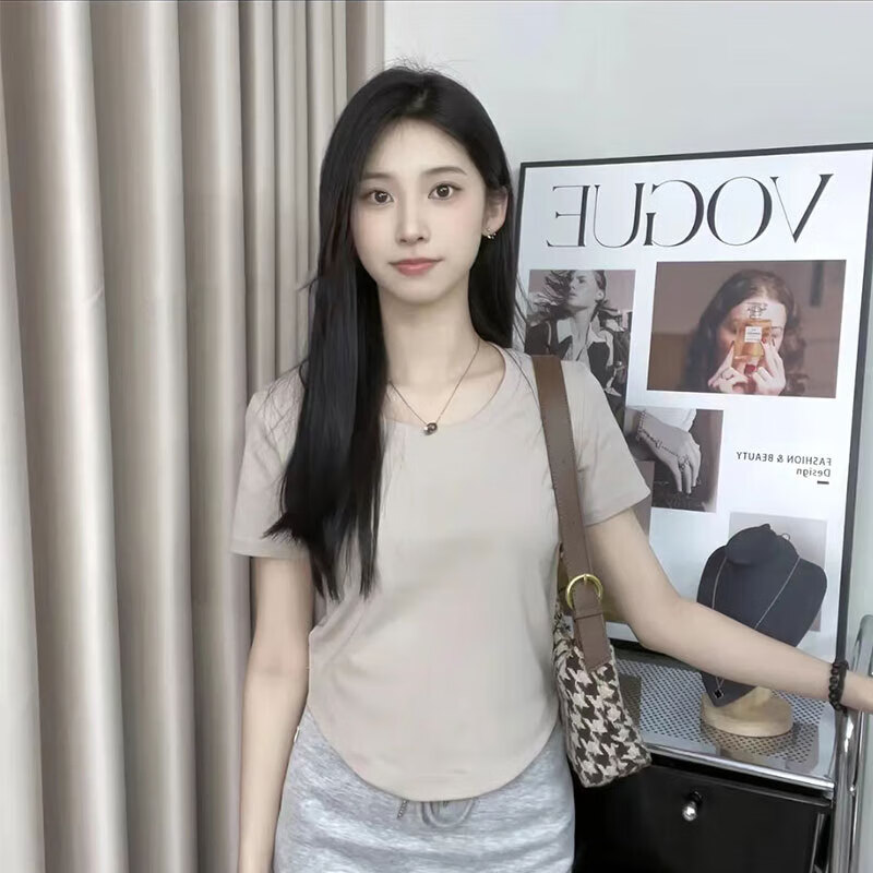 纯欲风短袖t恤女2025夏季薄款修身显瘦圆领短款不规则打底上衣服 黑色 2XL – 仅售19.9元!