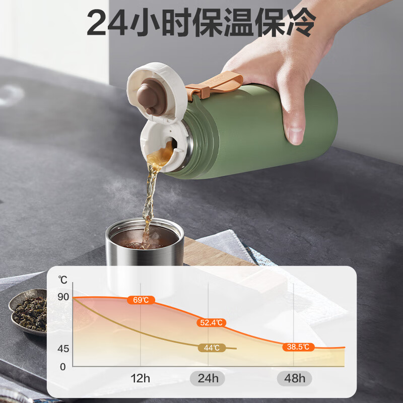 - 优异保温性能:双层真空结构,热量不易散失,热饮可保温6小时,冷饮可保持24小时。