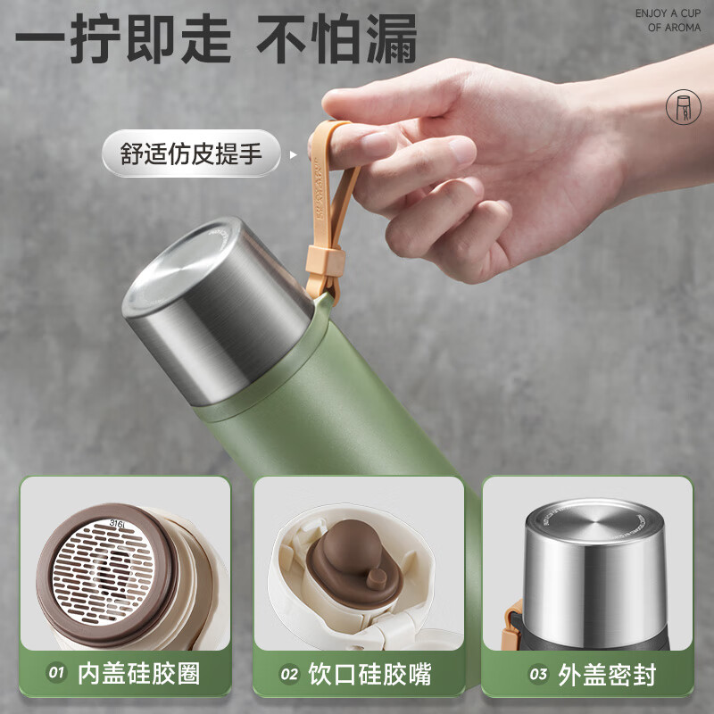 户外运动 | 大容量能满足长时间运动后补水,隔离层防止茶叶渗漏。 |