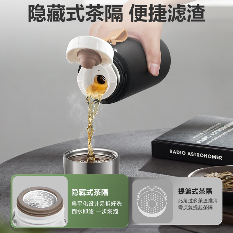 - 茶水分离:专为爱茶人士设计,内部隔离层可防茶叶渗透,保持饮品原味。