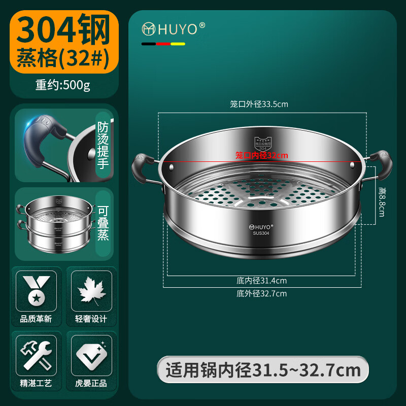 HUYO德国304不锈钢蒸格家用带耳蒸屉电饭锅通用架 – 仅售 44.8 元,超值折扣!