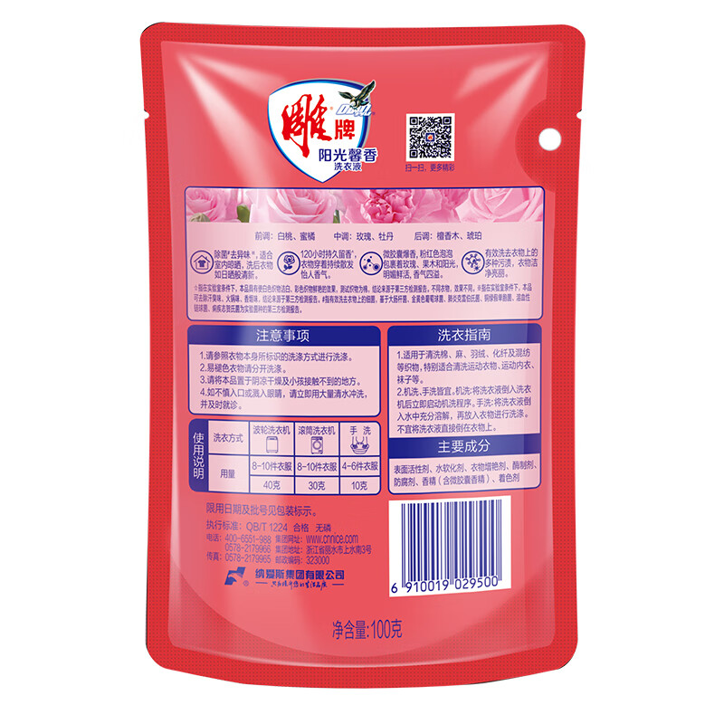 - 微胶囊爆香(五月玫瑰):微胶囊技术在洗涤过程中缓释,香味持久不易褪色,仿佛漫步在玫瑰花园。